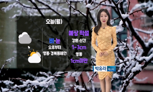 * 수도권, 강원영서, 충청북도는 오전 한때 약한 비나 눈이 내릴 때가 있겠다.