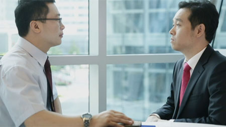 그리고 임원이 얘기하는 내내 눈을 떼지 않는데요.