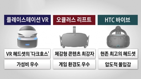 현재 세 가지 기기가 시장을 장악하고 있습니다. 소니 플레이스테이션 VR, 오큘러스 리프트 그리고 HTC 바이브인데요.