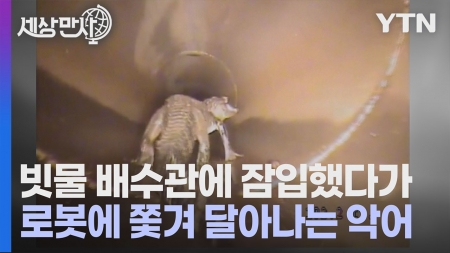 - 빗물 배수관에 들어왔다가 로봇에게 쫓겨 도망가는 악어