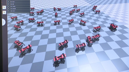 프로그램을 실행하자 네 발 달린 로봇이 화면에서 움직입니다.