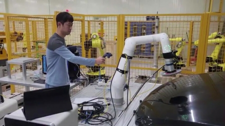 그런데 조이스틱을 잡고 움직이듯 경로를 그려주면 로봇 팔이 그대로 작업을 수행하는 시스템을 개발했습니다.