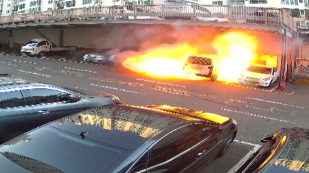 폭발하듯 난 불은 순식간에 번져 차량 5대를 불태웠습니다.