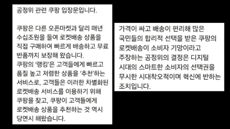 쿠팡은 이번 공정거래위원회 결정에 대해 소비자 선택권을 무시한 시대착오적 조치라고 반발했습니다.