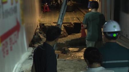 어제저녁, 서울 이문동 행정복합청사 건설현장 앞 골목에서 깊이 2.5m, 면적 13㎡ 크기 땅 꺼짐 현상이 일어난 겁니다.