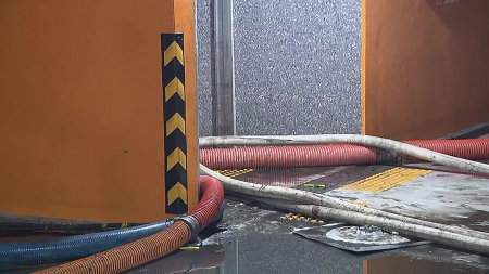 폭우 피해를 입은 건물 지하 2층입니다. 침수된 지 일주일이 지났지만, 여전히 빗물이 남아있는 상태라 양수기로 계속해서 빼내고 있습니다.