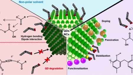 고려대 신소재공학부 오승주 교수 연구팀은 양자점의 성질을 안정적으로 지켜주는 기능성 포토레지스트를 설계해 전자·광전자 소자의 소형화와 고성능화를 위한 반도체 제작 공정을 개발했다고 밝혔습니다.